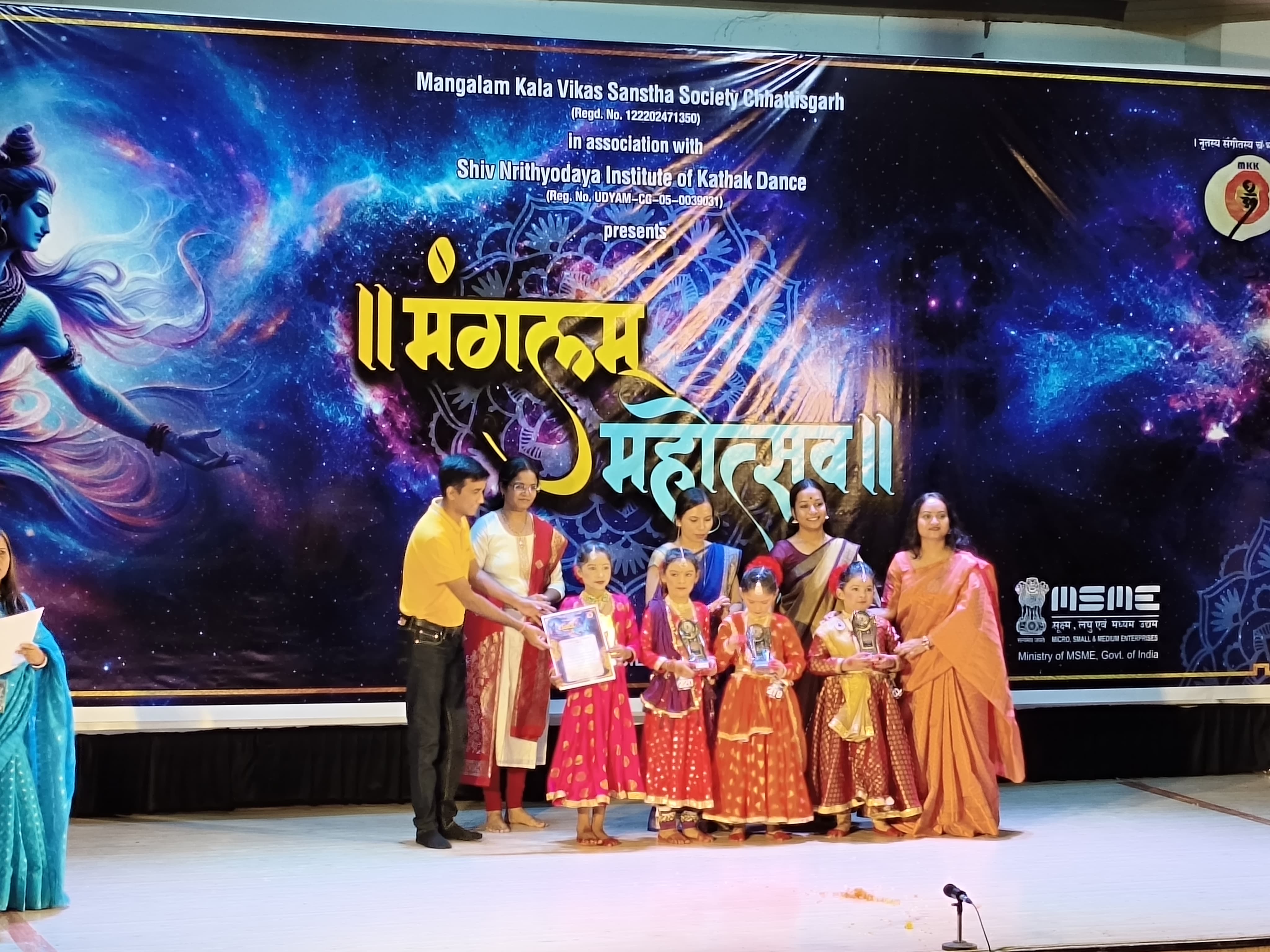 रायपुर। महाराष्ट्र मंडल के आजीवन सभासद सौरभ जतकर और पूनम जतकर की छह वर्षीय सुपुत्री श्रिया जतकर मंगलम कला विकास संस्था छत्तीसगढ और शिव नृत्योदय इंस्टीट्यूट ऑफ कत्थक डांस के संयुक्त तत्वावधान में बिलासपुर में आयोजित मंगलम महोत्सव में सब जूनियर सोलो कत्थक डांस कैटेगरी में रनर अप रहीं। इसी तरह श्रिया ने अपने ग्रुप के साथ समूह कत्थक डांस स्पर्धा में विजेता होने का गौरव हासिल किया।
