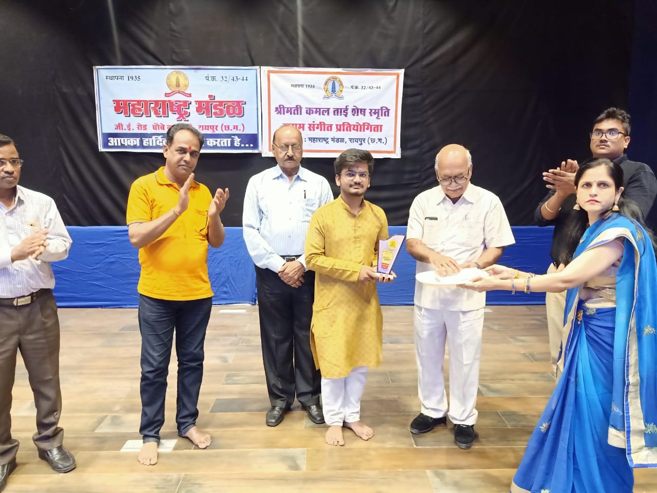 मंडळ के सदस्य रंजन मोडक ने बताया कि संगीत में रूचि रखने वाले युवाओं को मंच देने और उनकी प्रतिभा को निखारने के लिए श्रीमती कमल ताई शेष स्मृति में सुगम संगीत प्रतियोगिता का आयोजन किया जा रहा है। कार्यक्रम का आयोजन महाराष्ट्र मंडळ चौबे कालोनी में 20 सितंबर की शाम 4 बजे किया जाएगा। स्पर्धा में भाग लेने के लिए प्रतिभागी 15 सितंबर तक अपना पंजीयन करा सकते है। विजेता प्रतिभागियों को पुरस्कृत किया जाएगा।