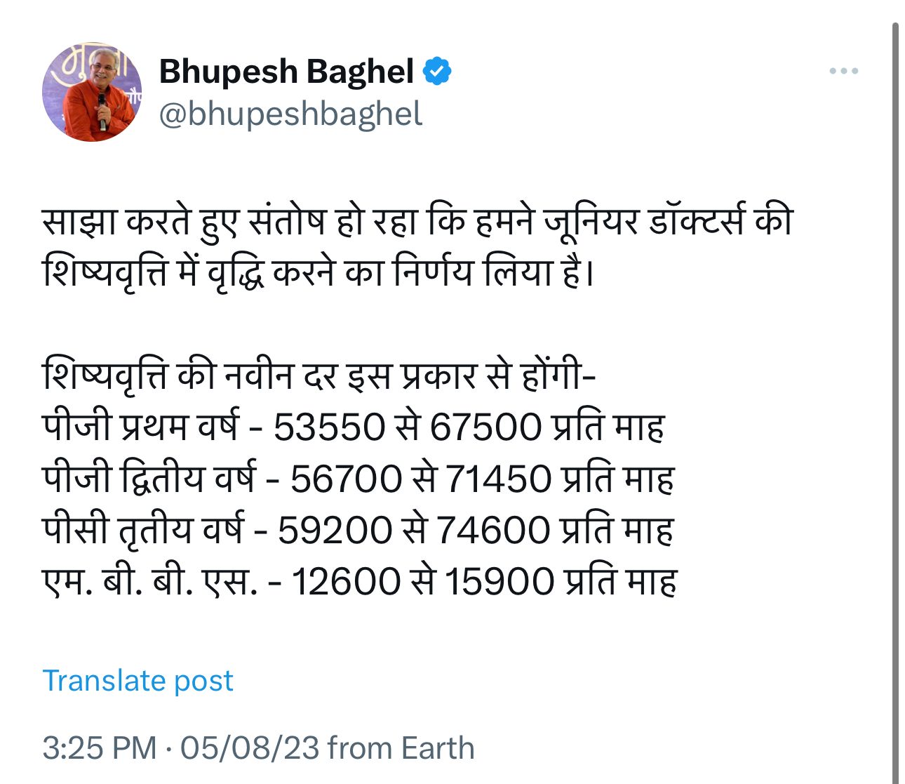 छत्तीसगढ़ सरकार ने जूनियर डाक्टरों की शिष्यवृत्ति बढ़ाने का लिया निर्णय